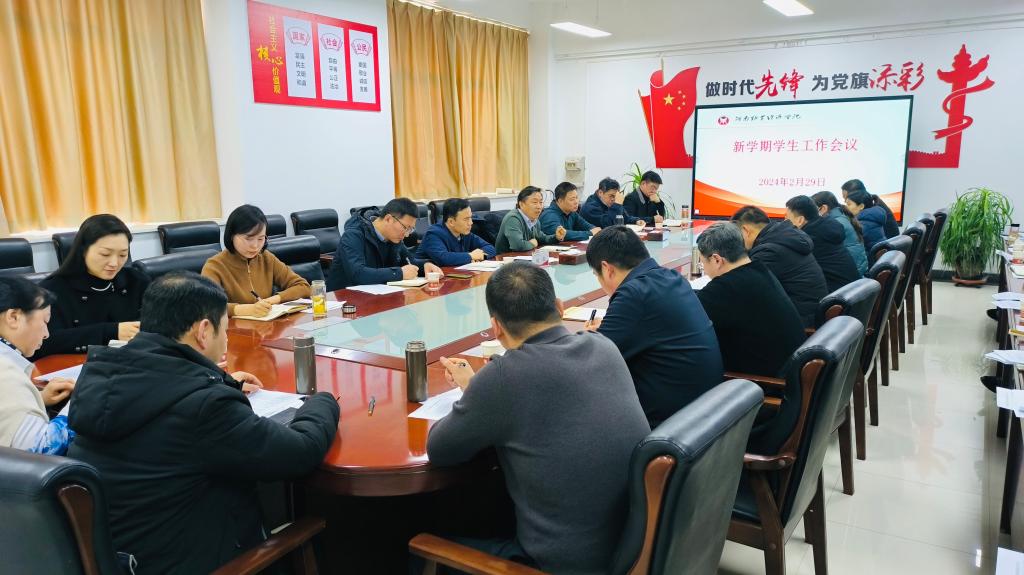 开学伊始,为确保新学期各项学生工作平稳、有序、高效运行,2月29日下午,学校新学期学生工作会议在龙子湖校区生工楼A229会议室召开。校党委副书记姚毅、副校长边传周出席会议,学工部、招生办公室、大学生就业创业指导服务中心、校团委、大学生心理健康教育中心、三校区“一站式”学生社区综合管理服务办公室负责人以及各学院党委副书记参加会议。会议由学工部部长郝景昊主持。