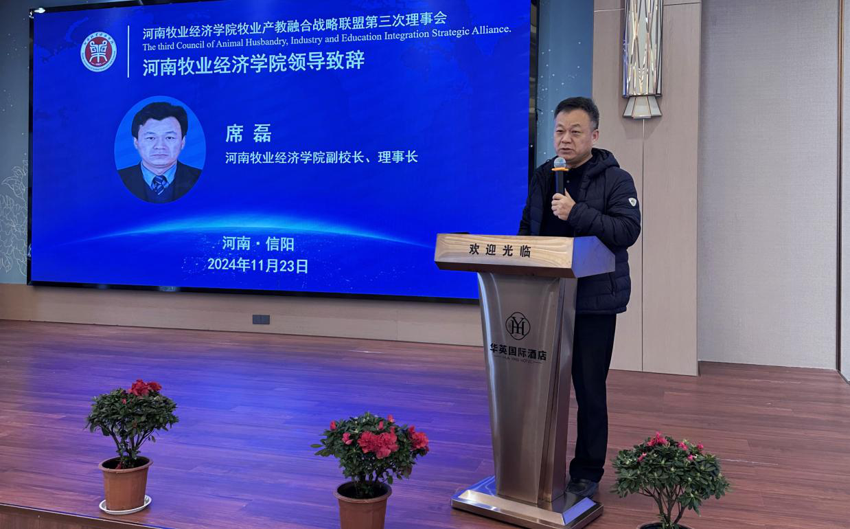 11月23日,pg电子官网牧业产教融合战略联盟第三次理事会暨智慧牧业研讨会在信阳市潢川县河南华英农业发展股份有限公司召开。副校长、牧业产教融合战略联盟理事长席磊,牧业产教融合战略联盟会长张卫宪,动物科技学院相关负责人、教师代表及省内外50多家联盟单位企业代表参加会议。会议由动物科技学院副院长邓红雨主持。
