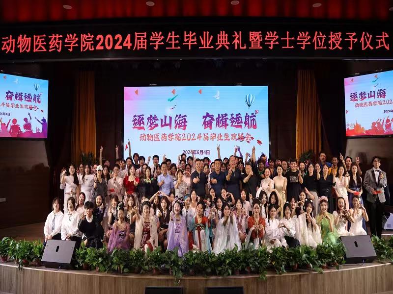 四载青春始于秋时,终于盛夏,动物医药学院2024届学生毕业典礼暨毕业生欢送会在经久不息的掌声中圆满落幕。衷心祝愿每一位2024届毕业生在中华民族伟大复兴的接力跑中,跑出青年风采、跑出优异成绩,不负时代,不负韶华,不负母校培养,用自己的实际行动为母校增光、为人生添彩、为国家和社会贡献青春力量。(陈雁雪 文/图)