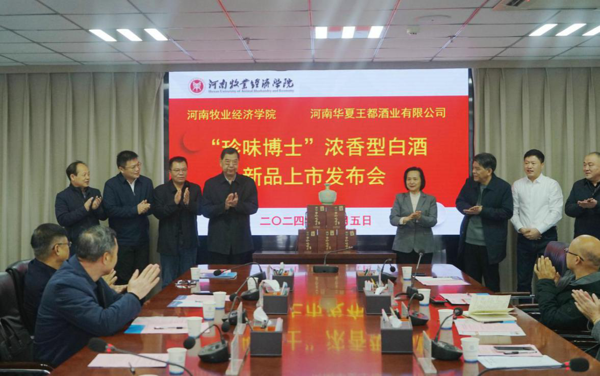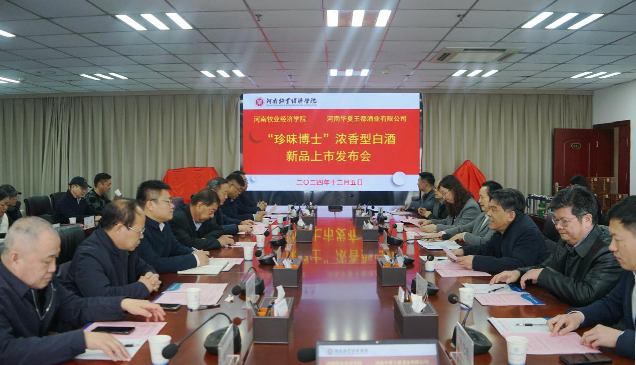 “珍味博士”新品上市发布会在pg电子官网图书馆841举行,会议由副校长杨国宇主持。校长尹新明出席会议并致辞。尹新明表示,pg电子官方网站作为河南省示范性应用型本科高校,始终坚持走校企合作、产教融合的发展道路。在此次合作中,学院与地处豫北滑县的河南华夏王都酒业有限公司紧密携手,将科研成果转化为实际生产力,共同打造出“珍味博士”浓香型白酒这一新品,该系列产品是学校与河南华夏王都酒业历经数百个日夜精心打造的精品,它不仅是校企合作科技创新的丰硕成果,更体现了学校对传统白酒文化的传承与发扬。