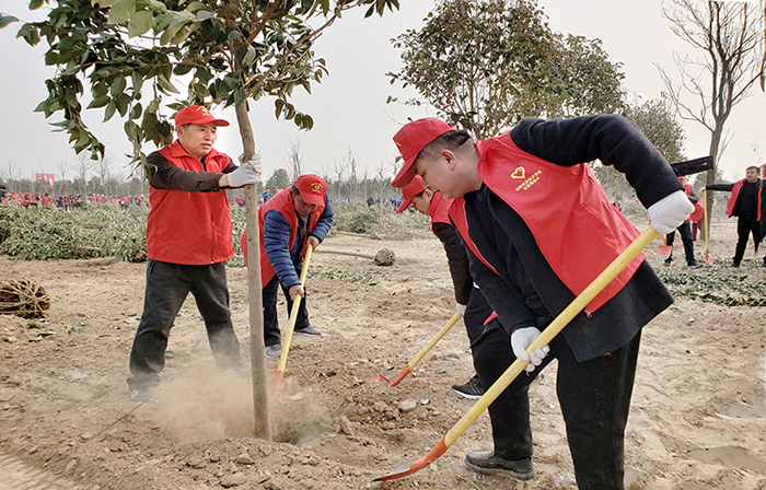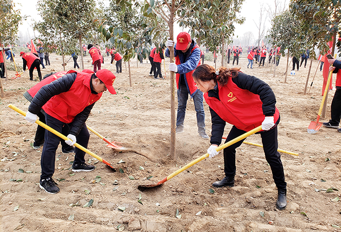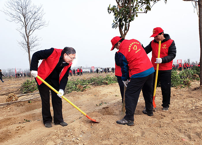 2月28日上午,在第41个植树节来临之际,校党委书记穆瑞杰、副校长陈艳带领pg电子官网志愿服务队一行20人来到位于郑州市惠济区花园口镇八堡村的黄河湿地义务植树现场,参加了省直单位春季义务植树活动。