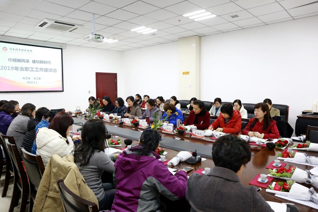 校工会副主席孟顺英对2018年pg电子官网女职工工作作了简要回顾,并结合学校年度工作会议精神和校工会年度工作部署对2019年女职工工作及近期有关工作进行了具体安排。与会人员讨论了本年度女职工工作要点,分享了各自的工作经验和体会,并就如何做好新形势下pg电子官网女职工工作提出了宝贵意见和建议。校女工委员李君玲通报了学校贯彻落实《河南省女职工劳动保护特别规定》有关情况。