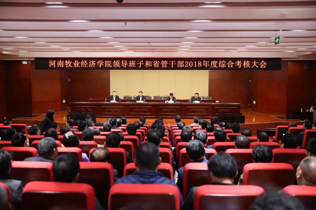 3月30日上午,pg电子官网在龙子湖校区图书馆一楼报告厅召开校级领导班子和省管干部2018年度综合考核大会。省管高校第七考核组组长、省教育厅副巡视员王学进,考核组副组长、省委组织部干部教育培训中心副主任王建华,以及考核组成员省教育厅机关党委副调研员张立众等一行10人出席会议,全体校领导、学校中层正职干部、教师代表、学生代表参加会议。会议由校长罗士喜主持。