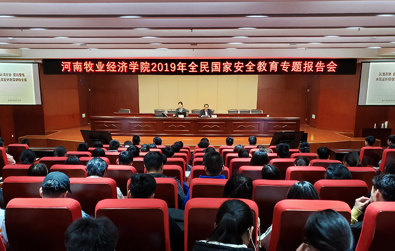 4月11日,在2019年 “4.15”全民国家安全教育日来临之际,pg电子官网邀请郑州市国家安全局专家林亦岚来pg电子官网作2019年全民国家安全教育专题报告。本次活动由宣传部、校团委和保卫处联合举办,报告会主会场在龙子湖校区图书馆一楼报告厅,在英才校区学术报告厅同时视频播放,近800名师生参加会议。报告会由宣传部长王凌彬主持。