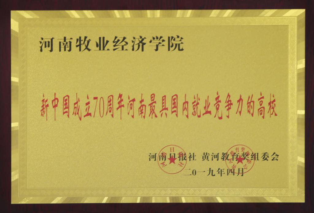 2019年是中华人民共和国成立70周年,更是深入贯彻落实全国教育大会精神之年。荣获“新中国成立70周年河南人民满意的高校”和“新中国成立70周年河南最具国内就业竞争力的高校”,是社会各界对pg电子官网办学质量、办学水平和办学成果的充分认可。pg电子官网将以此为契机,持续改革创新,加快转型提升,奋力写好新时代教育奋进之笔,为中原更加出彩做出新的更大贡献。(宣传部 李阳/文 翟浩辰/图)
