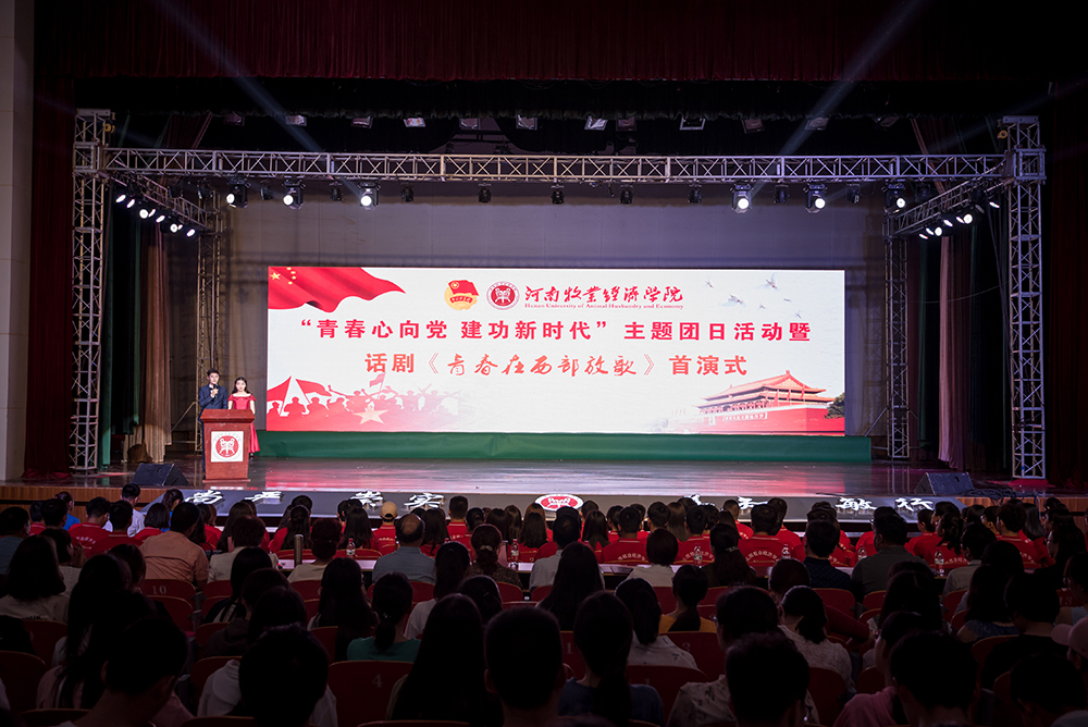 为深入贯彻落实全国全省教育大会精神和高校思想政治工作会议精神,充分发挥校园文化建设在大学生思想政治教育中的重要作用,5月30日下午,pg电子官网在英才校区大礼堂举行“青春心向党 建功新时代”主题团日活动暨话剧《青春在西部放歌》首演式。副校长陈艳、杨志清,省文化和旅游厅公共服务处处长杨文波,团省委社会联络部部长李山英,中国青年报河南记者站站长潘志贤,省文化馆志愿者工作站站长李道畅,省公益无限艺术团团长王继英等领导嘉宾出席活动,并与现场1200余名师生一起观看了演出。