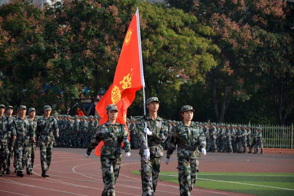 大会在庄严的升国旗仪式中拉开帷幕。会上,全体新生将“1949-2019”等祝福字样通过队形变化呈现出来,献礼新中国成立70周年。参加分列式表演的各个方阵在铿锵的军乐声中依次通过主席台,同学们迈着整齐的步伐,高喊响亮的口号,整齐划一的动作和英姿飒爽的风貌,赢得了学校领导、部队军官和现场观众的阵阵掌声。分列式结束后,学生代表进行了刺杀操、匕首操表演,承训部队教官进行了军体拳、战术展示表演。
