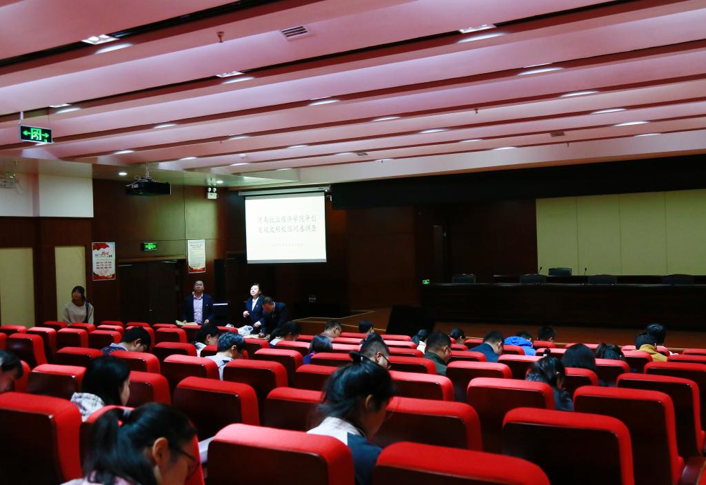 汇报会结束后,考核组查看了pg电子官网文明校园创建工作档案资料,对pg电子官网的精神文明创建展板、校史馆、酒文化馆和餐厅等校园设施进行了实地考察。同时,对20名教师代表和30名学生代表进行了问卷调查。(翟浩辰/文 吴义辉 翟浩辰 李阳/图)