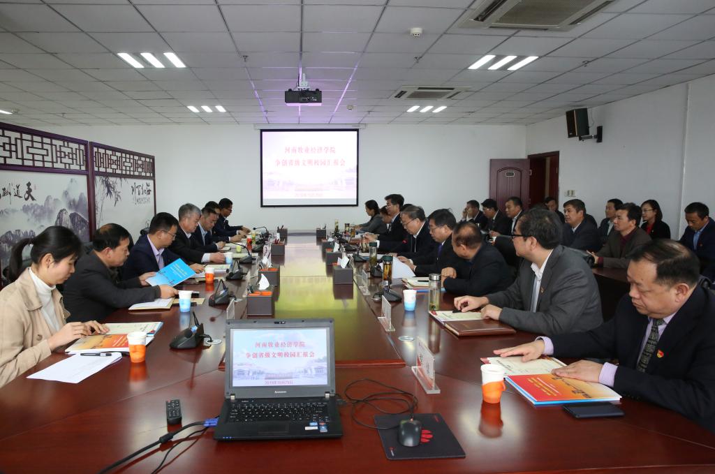 王勇生表示,本次考评共分四个步骤,一是听取汇报。学校向考评组简要汇报近年来精神文明创建工作情况;二是查阅资料。主要查阅2018-2019学年的文明校园创建资料,以及一个学年以来学校所获荣誉;三是实地查看。对照《河南省高校文明校园(标兵)测评体系》实地考察项目表,实地查看学校环境、氛围等内容;四是调查问卷。组织20名教师和30名学生参与调查问卷。王勇生强调,文明校园创建是群众性精神文明创建活动的重要组成部分,是全面贯彻习近平新时代中国特色社会主义思想和党的十九大精神,贯彻党的教育方针,坚持社会主义办学方向,落实立德树人根本任务的重要载体;是把学校建设成为锻造理想信念的熔炉、弘扬主流价值的高地、涵育中华文化的家园、滋养文明风尚的沃土的有效途径;是激励青少年向上向善、孝老爱亲,忠于祖国、忠于人民,培养担当民族复兴大任的时代新人的坚强保证。