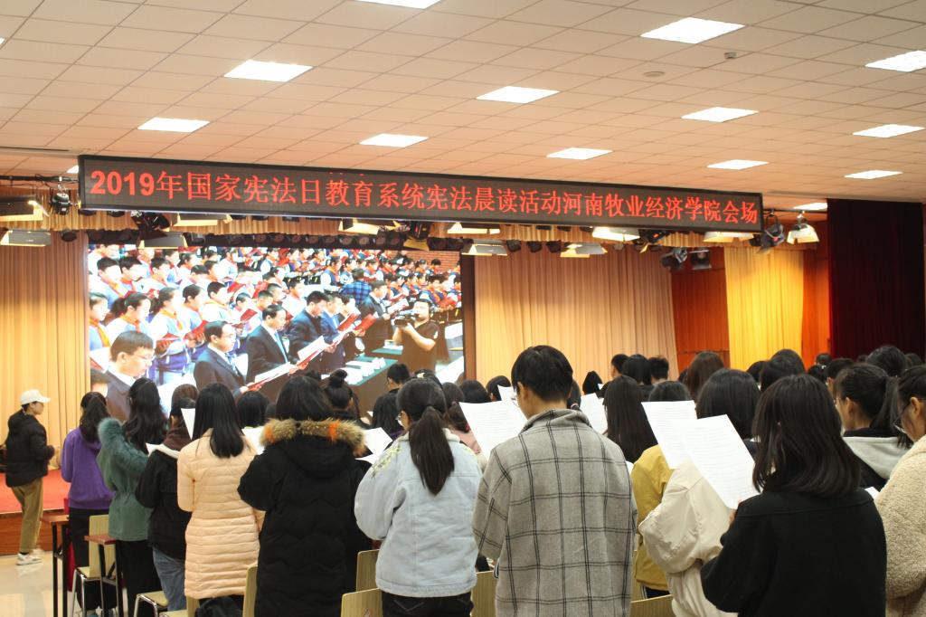 2019年12月4日是我国第6个国家宪法日暨全国第19个法制宣传日,为大力弘扬宪法精神,维护宪法权威,学校在龙子湖校区大学生活动中心组织参加了2019年全国网络直播“宪法晨读”活动。pg电子官网党委宣传部、学工部、校团委的相关人员以及师生代表参加活动。