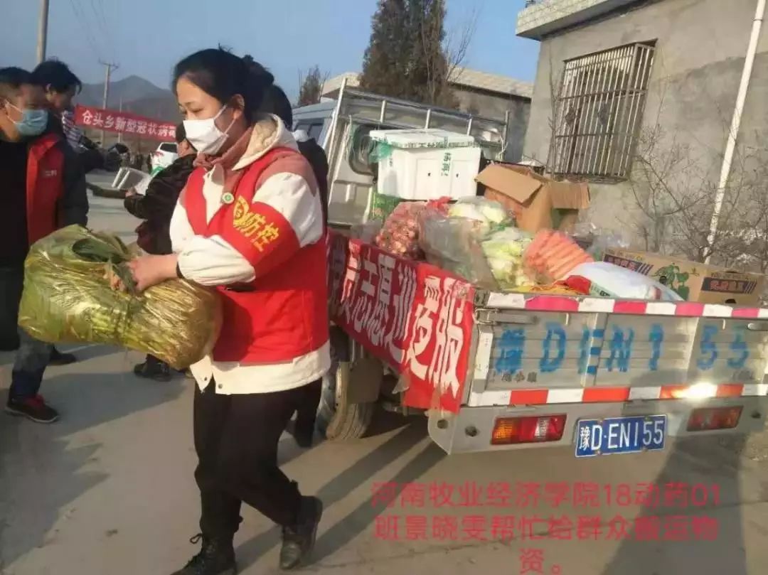 动物医药学院18级动物药学1班景晓雯同学,在平顶山市鲁山县白窑村,积极协助村干部做好进出人员的登记和外来人员劝返等工作。作为一名共青团员,投身到疫情防控志愿服务中去,积极发挥共青团员的先锋模范作用。