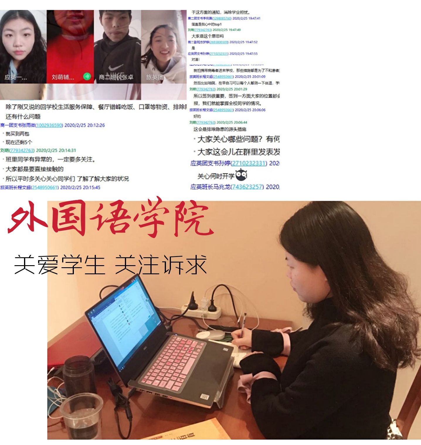 外国语学院在疫情防控期间,时刻关注学生身心情况,建立网络心理干预工作体系。心理专干刘萌老师通过各班级心理委员了解班级学生的动态,整理班级同学关注的问题,尽力解答或者反映学生的诉求,缓解学生对疫情、学业、返校等方面产生的焦虑,并通过早晚古诗词接龙引导学生在家也要保持学习,用诗词陶冶情操,修养身心。