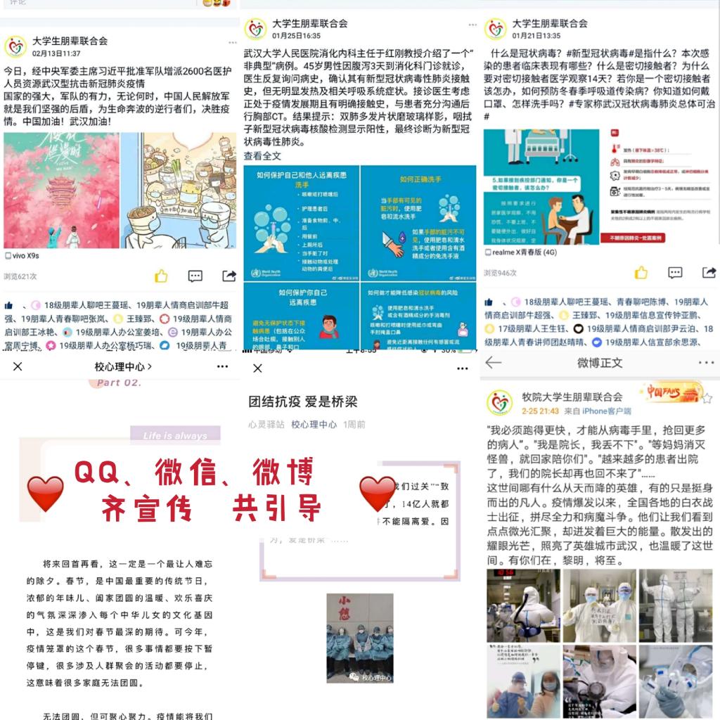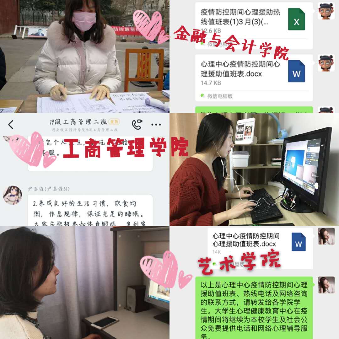 战“疫”打响后,各学院心理健康教育二级工作站积极响应校大学生心理健康教育中心的号召,积极开展防疫知识宣传,加强对学生的心理关怀和疏导,为pg电子官网学生筑牢心理防线,提升心理免疫力保驾护航。