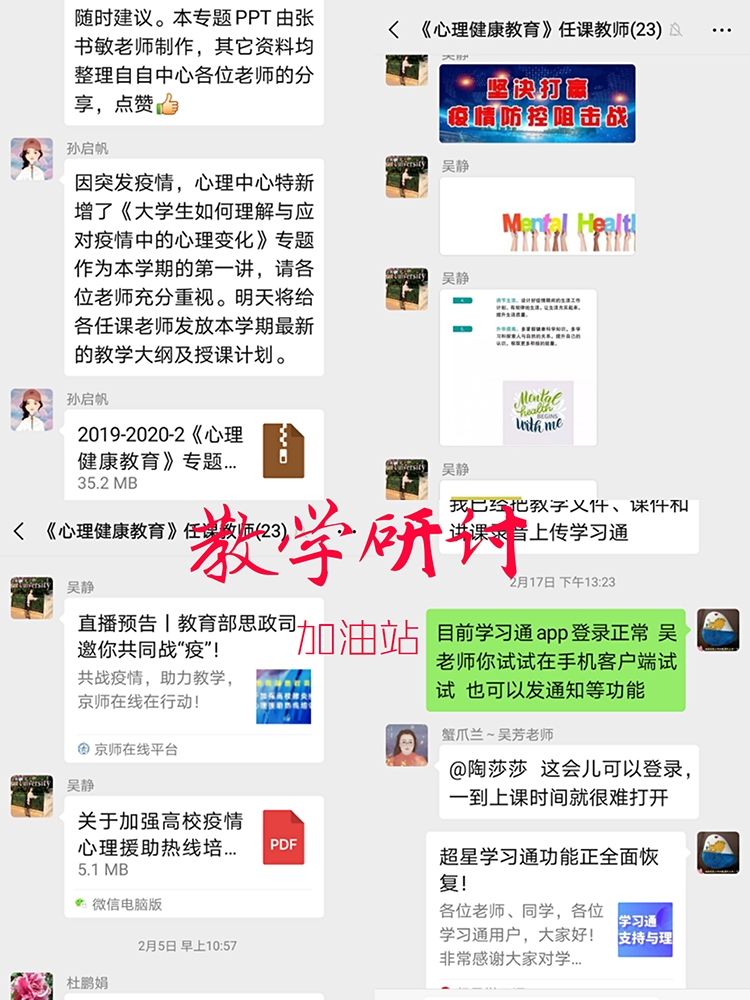 大学生心理健康教育中心为做好延迟开学期间网络教学相关工作,多次召开网络教学研讨会议,并结合疫情下的社会心态,为pg电子官网学生特设心理健康教育课程首讲内容-------《大学生如何理解和应对疫情中的心理变化》,帮助学生了解疫情中会出现的各类情绪状态,缓解焦虑感,无力感等负面情绪,引导学生树立积极心态应对疫情,调整生活节奏,保持身心健康。