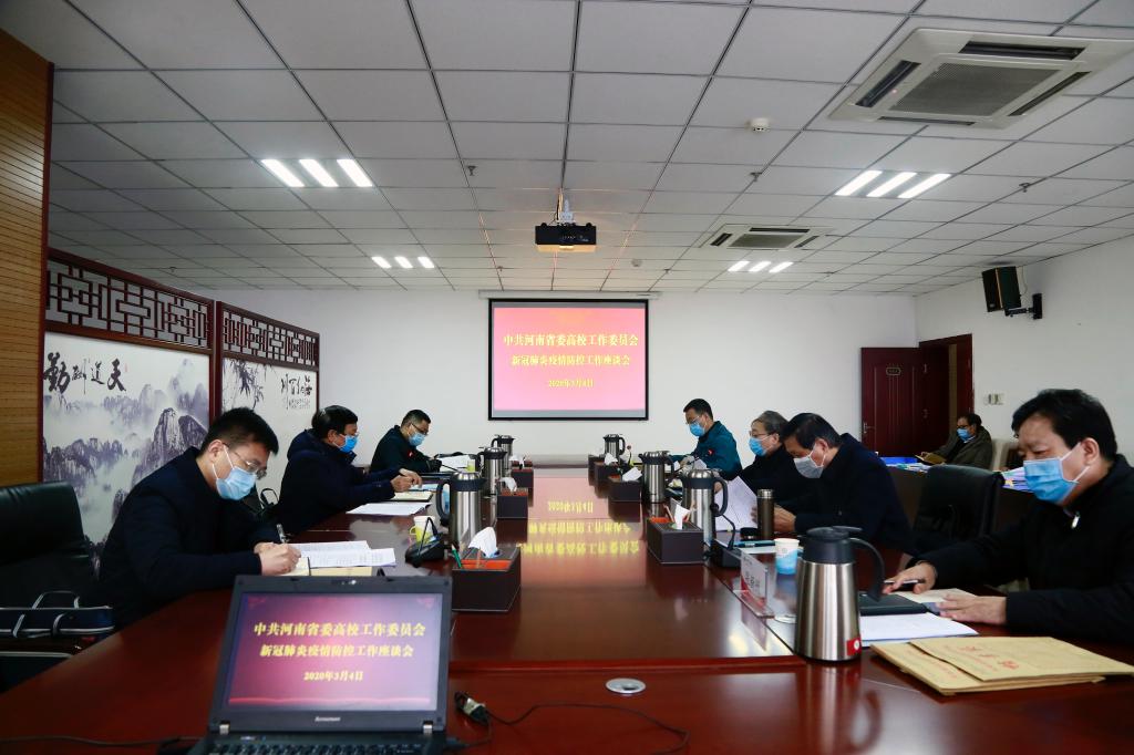 为认真落实省委省政府疫情防控工作部署,贯彻全省教育系统疫情防控工作视频会议精神,促进高校进一步抓紧抓实抓细疫情防控工作,3月4日上午,教育厅第五督导组组长、河南省委高校工委专职委员高治军同志在pg电子官网龙子湖校区主持召开新冠肺炎疫情防控工作专题座谈会。
