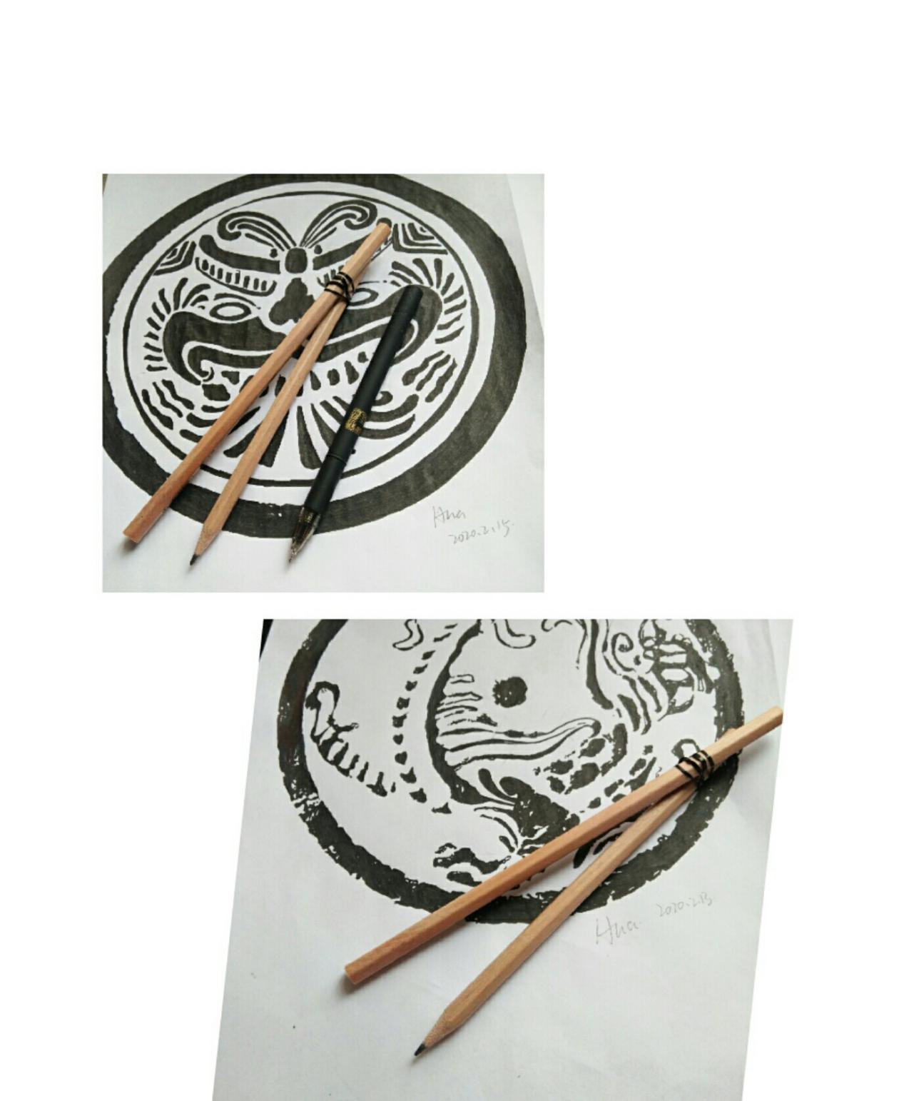 18服装01班的李灿欣同学由于疫情管控无法外出购买学习用具,在家中没有圆规画图的情况下,为了更好地完成专业性很强的画图作业,该同学“脑洞大开”,利用铅笔自制圆规进行画图。