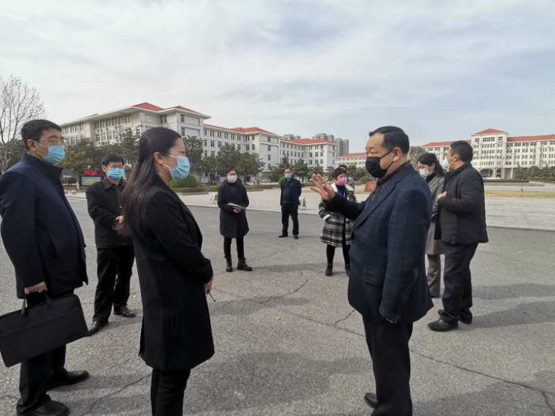 3月11日下午,惠济区教体局副局长崔双丽一行莅临pg电子官网,检查指导学校疫情防控工作,副校长程慎,院长办公室主任贾江、校医院院长梁天玉、后勤处处长姬道兴、保卫处处长权太举、英才校区综合服务办公室主任王永全等陪同检查。