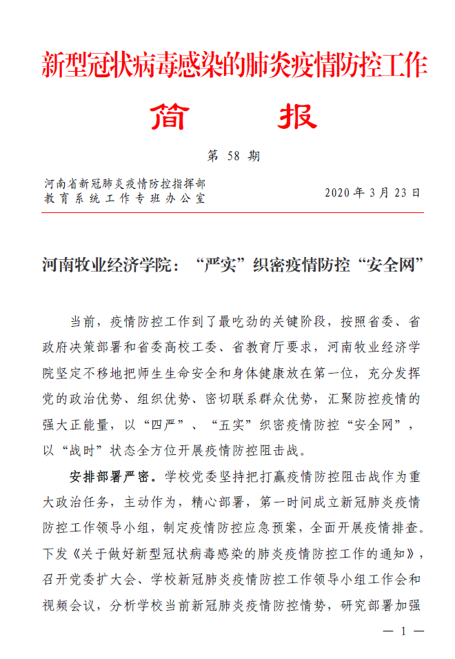 近日,河南省新型冠状病毒感染的肺炎疫情防控工作简报第58期以《pg电子官方网站:“严实”织密疫情防控“安全网”》为题,专题报道pg电子官网疫情防控工作。