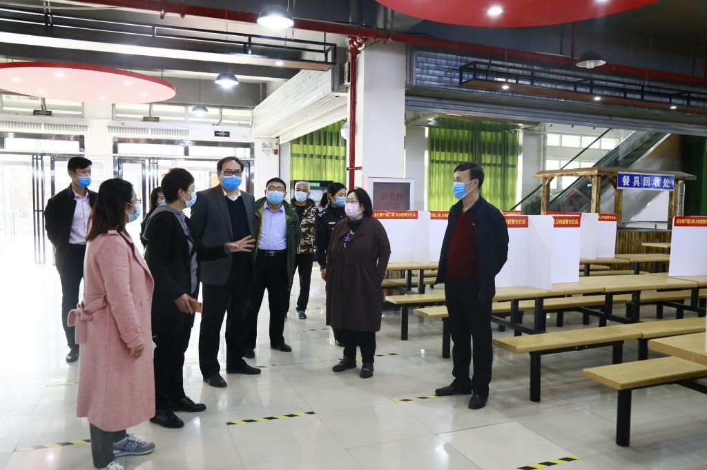 督导组对学校所做的工作表示满意,并对进一步做好学校疫情防控工作提出具体要求,一要严格落实教职员工及学生的身体健康监测,特别是要精准掌握外地未返郑师生的行程及健康状况;二要合理做好开学后学生活动区域划分,做好学生错峰就餐、分散就餐等就疫情防控工作;三要严格落实各项制度、方案,特别是要做好校园环境卫生清理与消毒,教室、食堂等人员密集场所的通风工作;四要进一步完善紧缺的防控物资储备,要及时反馈,多方筹措,确保开学前准备到位。 (宣传部 翟浩辰 图/文)