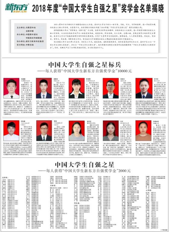 近日,共青团中央、全国学联共同组织的2018年度“中国大学生自强之星”奖学金名单揭晓,pg电子官网能源与智能工程学院王懂同学、王宁宁同学获“中国大学生自强之星”荣誉称号和奖学金。