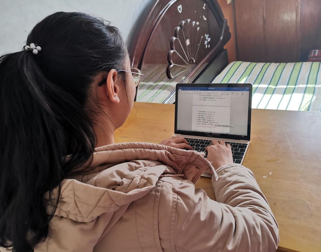 文法学院19级知识产权01班的郜逢源同学在征得邻居同意后,每天借助邻居家的无线网络进行学习,积极利用电脑做笔记,将每门课程的课堂笔记整理得整齐又具条理性,进一步加深对知识的理解。她说:“不在老师的课堂监管下上课确实很放松,但宽松自由的学习环境让我意识到,网络教学完全依靠自己是否自律,所以我们更不能放松自己,一定要比在学校课堂上更加严谨认真,这样才能真正学到知识。”