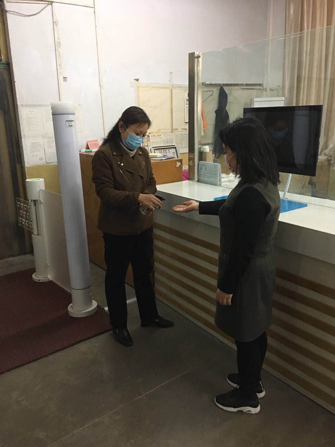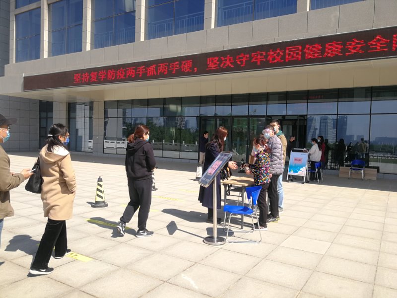 演练现场由校图书馆馆长张广芝主持,根据提前制定的疫情应急处置方案,采用情景模拟和现场演练相结合的方式,由部分馆员扮演学生,现场实战模拟了学生列队入馆身份识别、体温检测及出现体温异常学生的应急处置方案。参演馆员们严阵以待,以严格的标准、严谨的态度,有条不紊地对各个环节展开了实地操作演练。