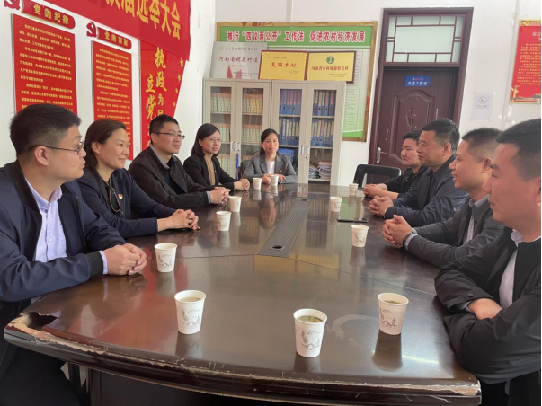 近日,副校长杨志清,经济与贸易学院党委书记张松刚,校团委书记杨莉,组织部副部长张君华、校团委副书记王森一行送刘佳楠同志到鲁山县四棵树乡黄沟村入村报到。鲁山县委常委宣传部长刘万福、团县委书记王跃坤、县驻村办副主任孟庆亮、四棵树乡乡长王永杰、黄沟村党支部书记张振元参加入村工作对接会。