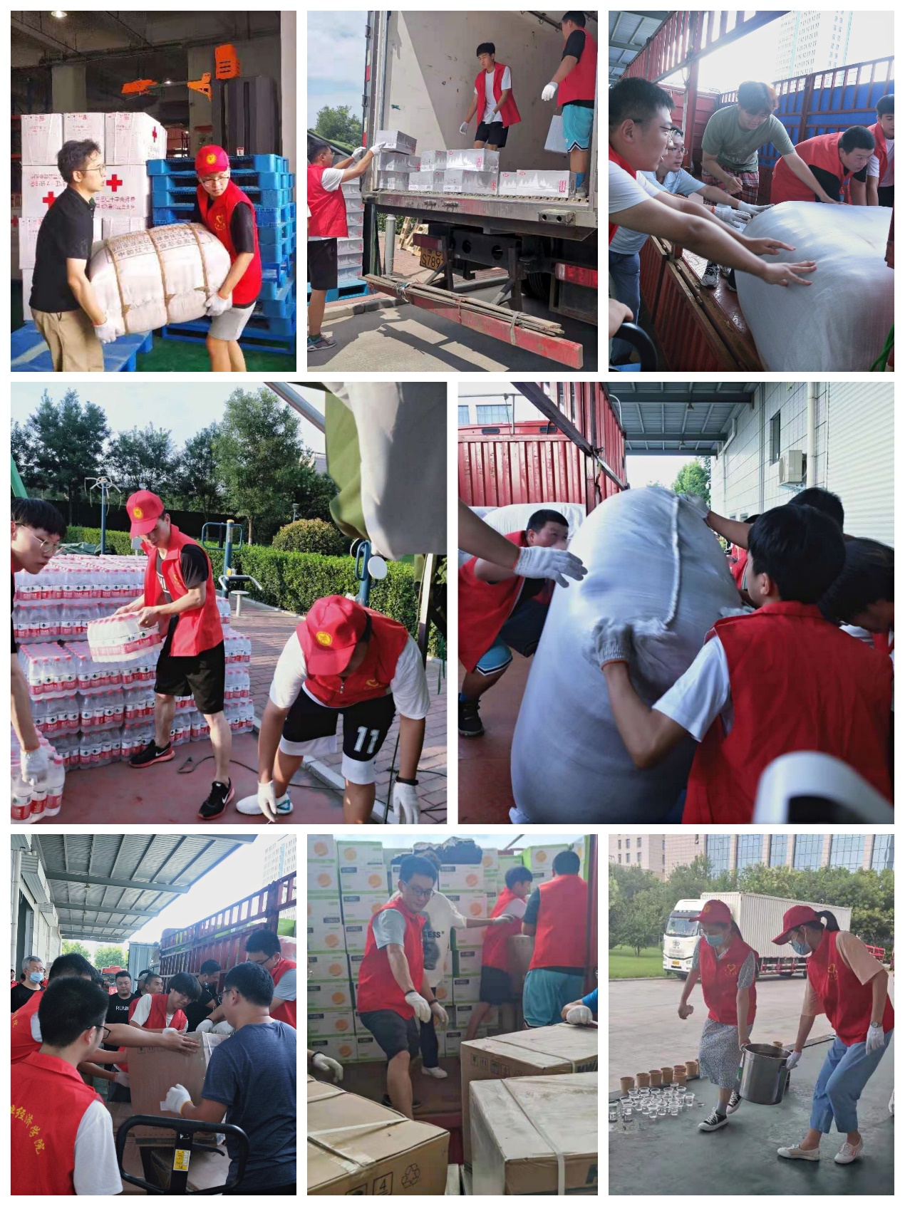 7月下旬,河南汛情牵动着全国人民的心,暴雨无情,人间有爱,来自各地捐助的防汛救灾物资陆续到达河南省红十字会,并由此分发至我省新乡、鹤壁、周口等地。爱心救灾物资的装卸需要大量的人力,河南省红十字会紧急招募志愿者,希望社会各界伸出援助之手。pg电子官网师生闻讯自发报名,踊跃参与,7月26日至29日,校团委与龙子湖校区各学院自愿参与的共青团员,后勤处、信息化办公室、体育部、畜产品质量安全技术研究院、图书馆等部门自发前往的老师共计70余名师生志愿者助力河南省红十字会装卸爱心救灾物资。