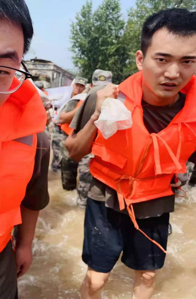 7月23日,因泄洪、决堤等因素,鹤壁市淇县下属乡镇水位内涝,北阳镇部分村庄水位高达颈部,其他部分村庄水位达到腰部,情况十分紧急,多数老人、学生和儿童被困。“群众遭难,人民受苦,作为一名退伍大学生,岂能袖手旁观?”在灾难面前,孙逸冰主动请缨,成为淇县退役士兵志愿救援队中的一员,在队长臧凯的组织下,他带上县武装部提供的皮划艇、救生衣、探照灯等救援装备,第一时间对鹤壁市淇县北阳镇水屯村、玖州国际物流园等多村庄进行人员搜救和转移。“举起幼小的婴儿、背起白发老人、拉着困难百姓……”这是孙逸冰参与救援时的真实写照。经过连夜数个小时的英勇奋战,他救援和转移物流园群众约150人。