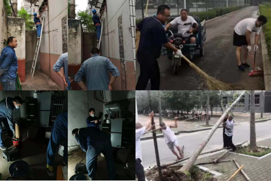 后勤处全体人员第一时间投入安全隐患排查工作、及时协调水泵抽水排污工作、扎实做好电力保障工作、认真开展汛期餐饮保障工作、积极开展防汛沙袋储备工作、不断加固沙袋排水工作、全面进行校园消杀工作、全力开展道路疏通工作……全力以赴在最短的时间内恢复校园和生活区的整洁。