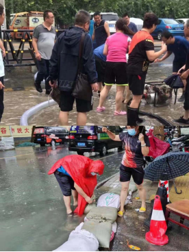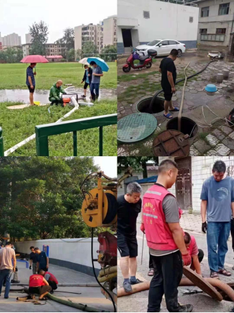 7月18日-21日,郑州市出现罕见的持续性强暴雨天气,累积平均降水449毫米的雨量,不但突破了当地气象历史记录的极值,也使郑州市出现了严重的内涝。暴雨面前,校园内、家属区积水严重,后勤处全体员工勇担责任,各司其职,始终坚守在防汛一线。