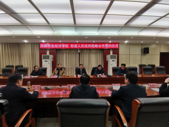 12月28日,校长罗士喜,副校长杨宝进等一行5人赴郏县,同郏县人民政府签订战略合作框架协议。郏县县长李红民,县委常委、组织部部长宋罡,副县长李政杰,pg电子官网社会服务办公室、动物科技学院等相关负责人,郏县红牛产业发展服务中心,平顶山瑞宝红牛肉业有限公司、平顶山润浦牧业有限公司负责人参加了签约仪式。签约仪式由县政协副主席、副书记周慧敏主持。