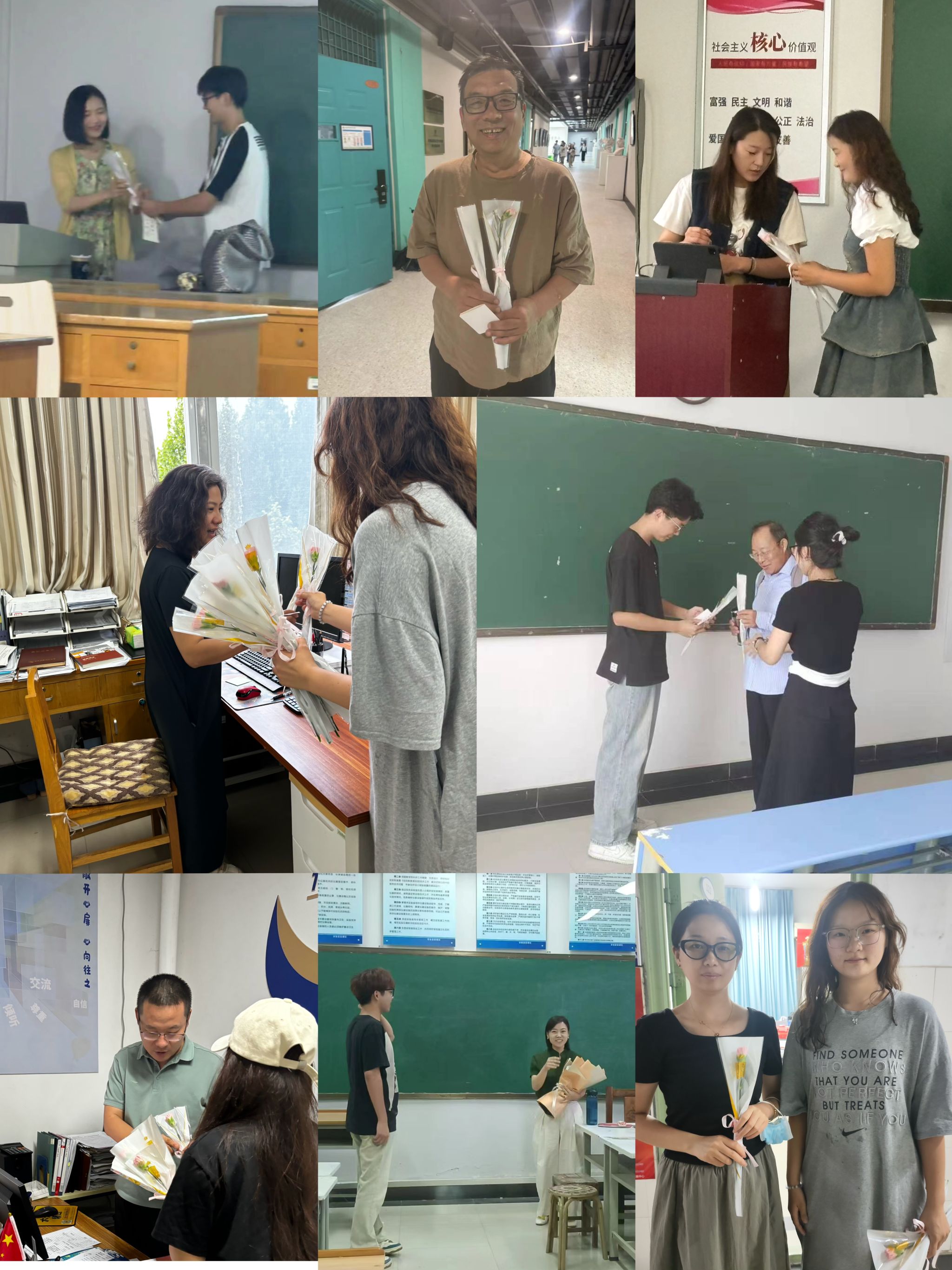 鲜花赠恩师,话语寄祝福。教师节送祝福不仅是学生向老师表达感激之情的一种方式,也是营造良好师生关系的一个重要环节。活动中,艺术学院学生为老师们献上一束鲜花,送上一句祝福,说出自己最想对老师说的话,将真情实感融入到每一句话、每一束花中,向老师们表达自己的感恩之情和深深的祝福。